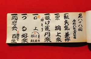三遊亭百生(3代目)師匠、真打昇進襲名の口上があります。
